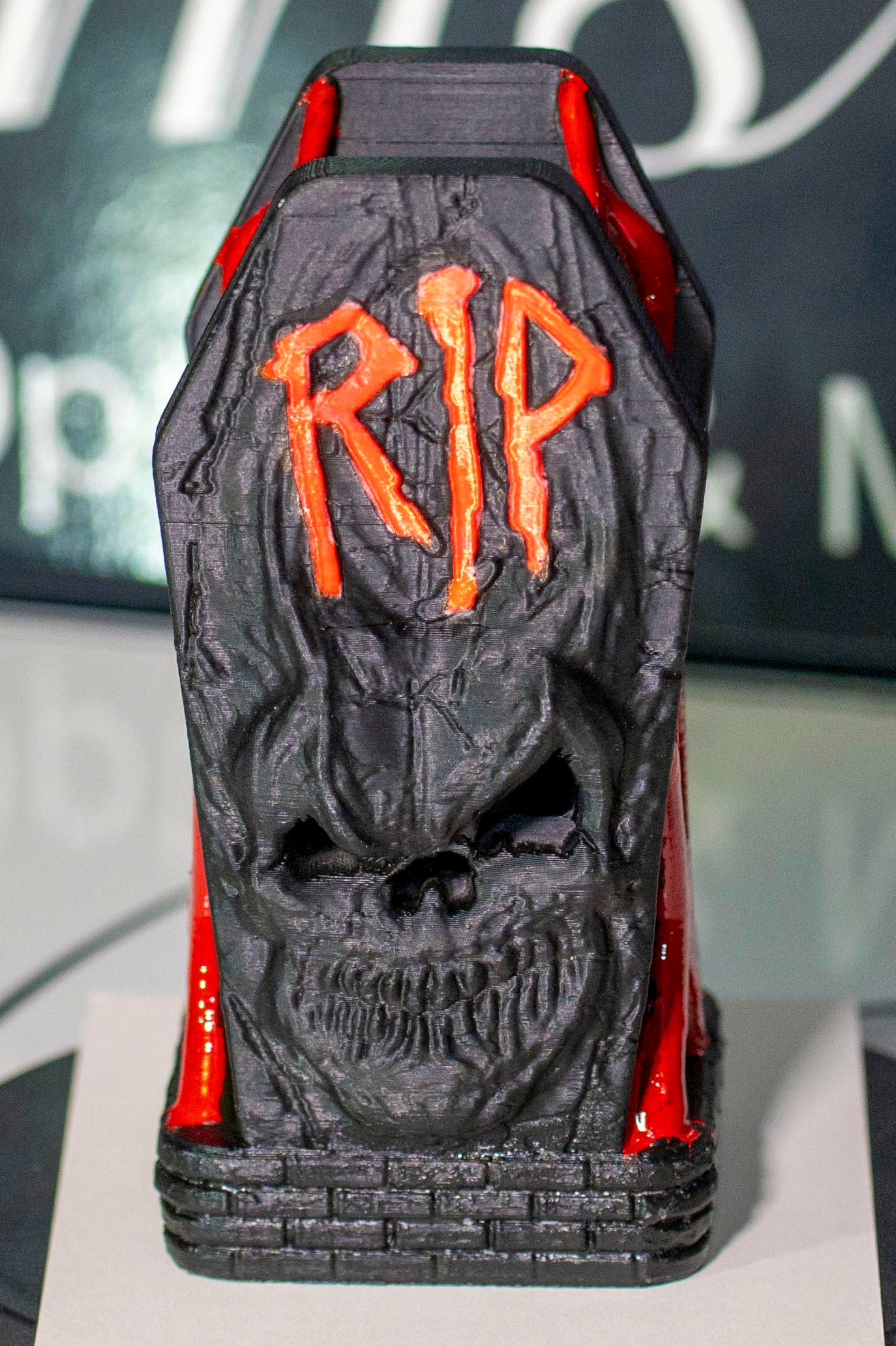Add gothic charm to your space with this intricately designed tombstone candle holder. Perfect for Halloween décor or dark-themed interiors, it provides a dramatic focal point while holding your candles securely. Crafted in high-quality 3D print, it’s both decorative and durable, ideal for collectors or horror enthusiasts.